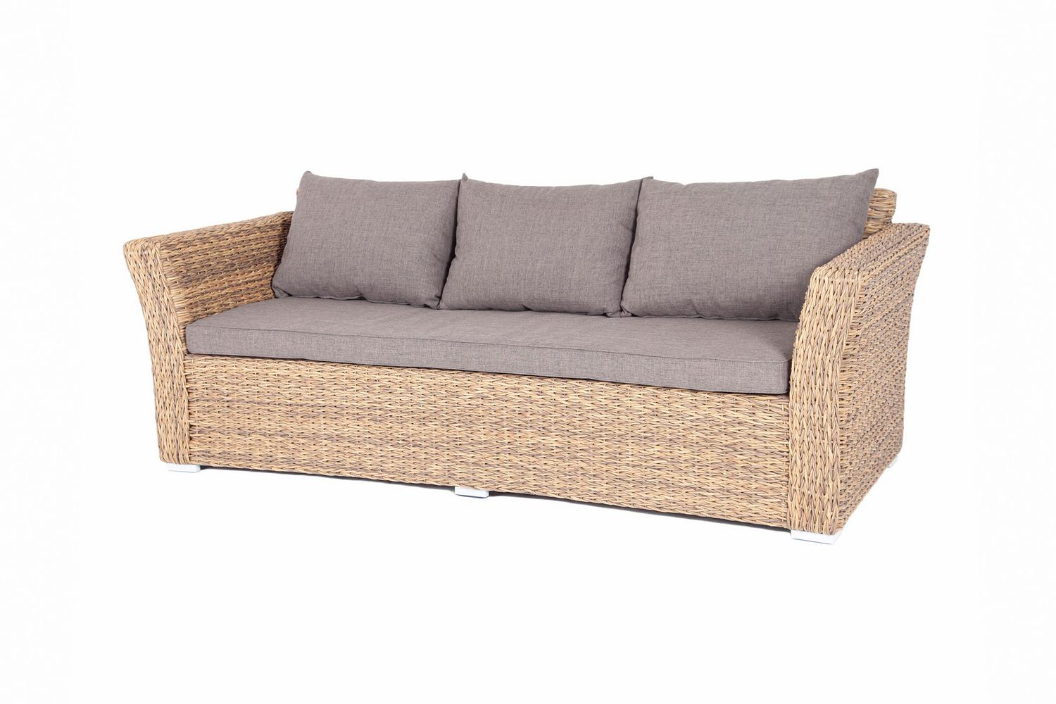 Просторные диваны, которые можно оставить на улице в любую погоду – незаменимое решение для обустройства места для отдыха на природе. Одним из подобных диванов может стать трехместный диван Капучино, выполненный с размерами 220х81.5х86.5 см, и с бежевой оплеткой каркаса, которая позволит с легкостью пристроить диван в любой интерьер и экстерьер. У дивана есть подлокотники и спинка, имеющие необычную форму.