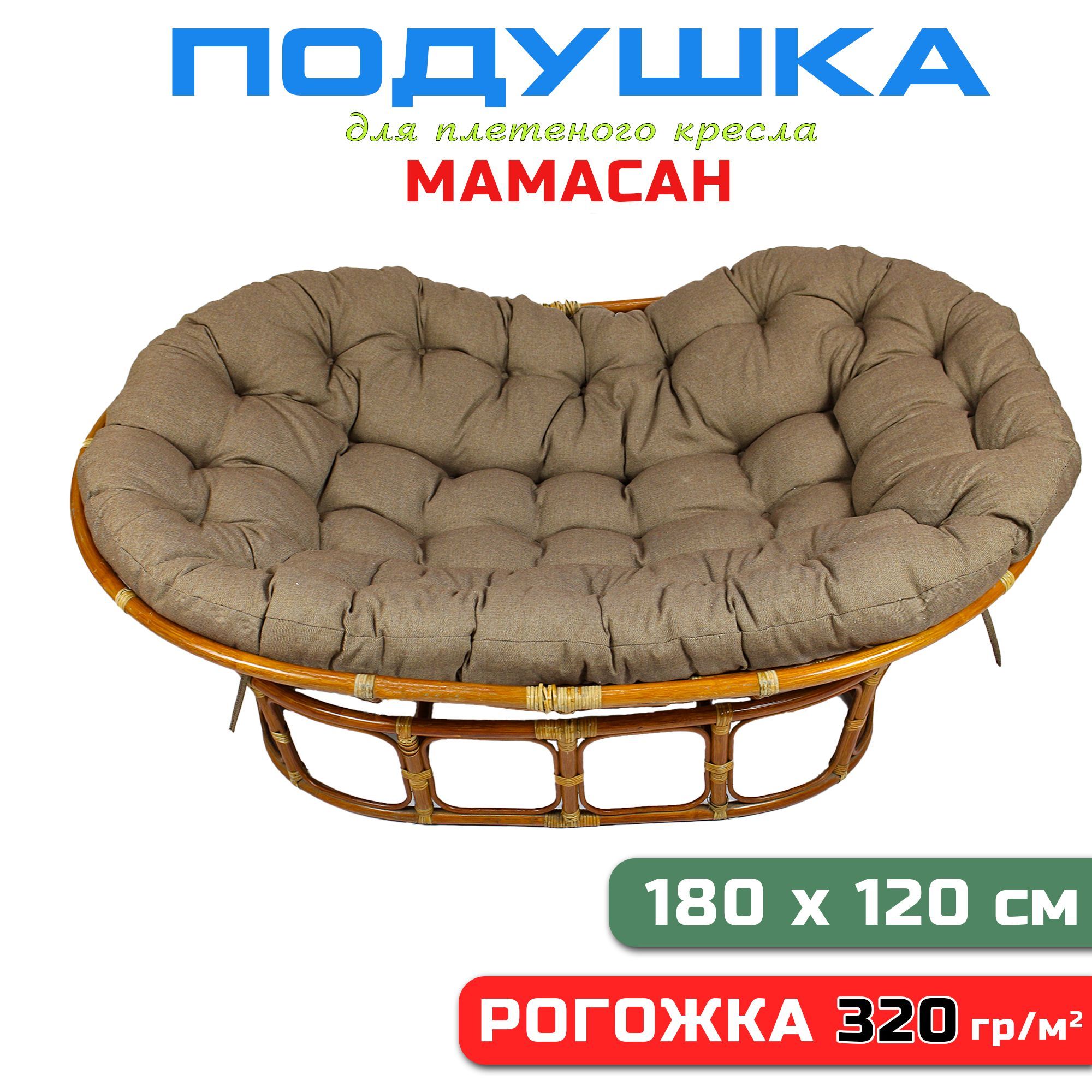 Краткое описание «Подушка для дивана Мамасан, 180х120 см, коричневая рогожка»