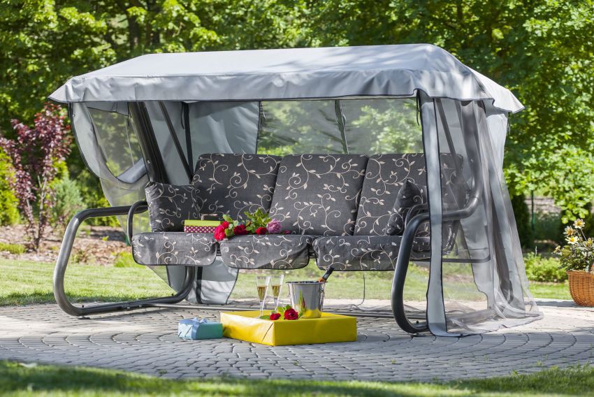 • Подумайте, где будут стоять ваши качели. В том случае, если место является открытым, важно, чтобы тент был устойчивым к ультрафиолету. Если же он стоит в тени, под деревьями, подумайте о наличии москитной сетки.