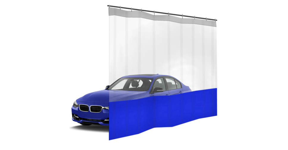 Шторы ПВХ для автомойки с окном, цвет синий 1м³