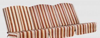 Вы можете приобрести подушку-кресло, предназначенную для трёхместных качелей, выполнена данная подушка в шоколадном цвете, у неё расцветка в полоску. Общие размеры данной подушки составляют 55 х 55 х 55 см. Чехлы изготовлены из износостойкой смесовой ткани с водоотталкивающей пропиткой, плотность которой составляет 220 г на квадратный метр. Наполнена подушка при помощи холлофайбера 80 мм, предназначена она для диаметра трубы 63 мм.