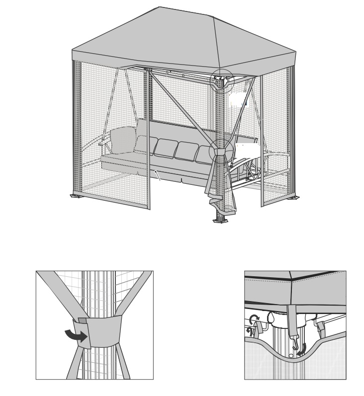 Тент-крыша с антимоскитной сеткой для садовых качелей Барселона