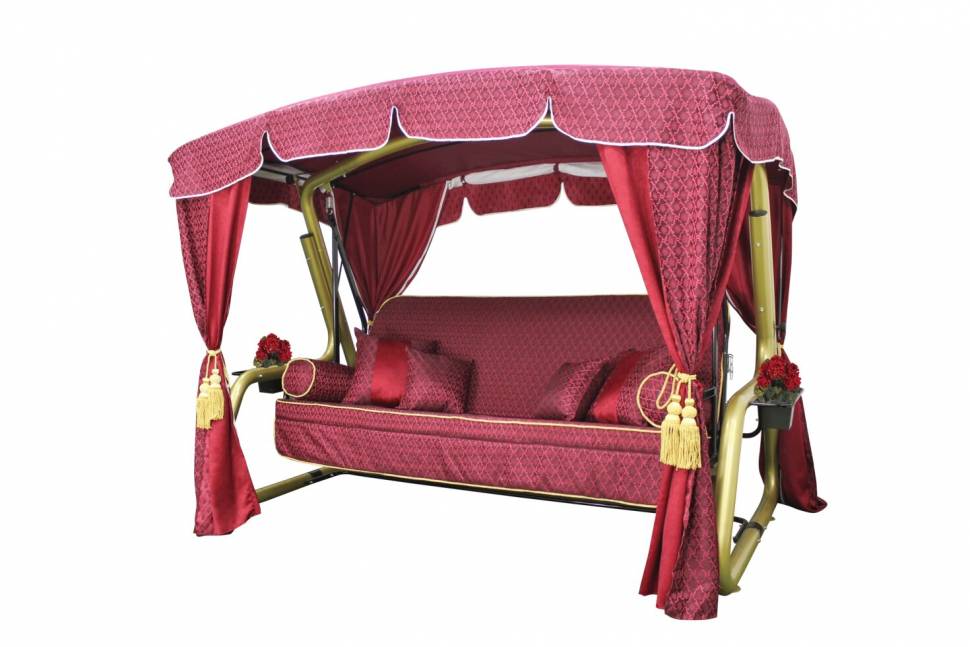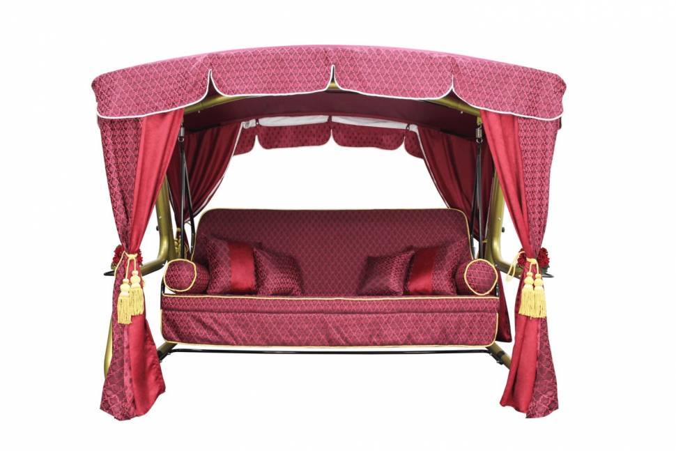 Мы предлагаем вам купить комплект для качелей садовых княгиня четырёхместных. Такой комплект выполнен в бордовом цвете, он подойдёт для глубины садовых качелей 277 см, ширины 170 см, высоты 188 см. Для изготовления тента мы использовали материал оксфорд 600. Этот материал качественный, он помогает защитить от солнечных лучей, не пропускает воду, в нём не размножаются микроорганизмы. Благодаря москитной сетке вы можете не беспокоиться о насекомых, они не испортят ваш отдых.